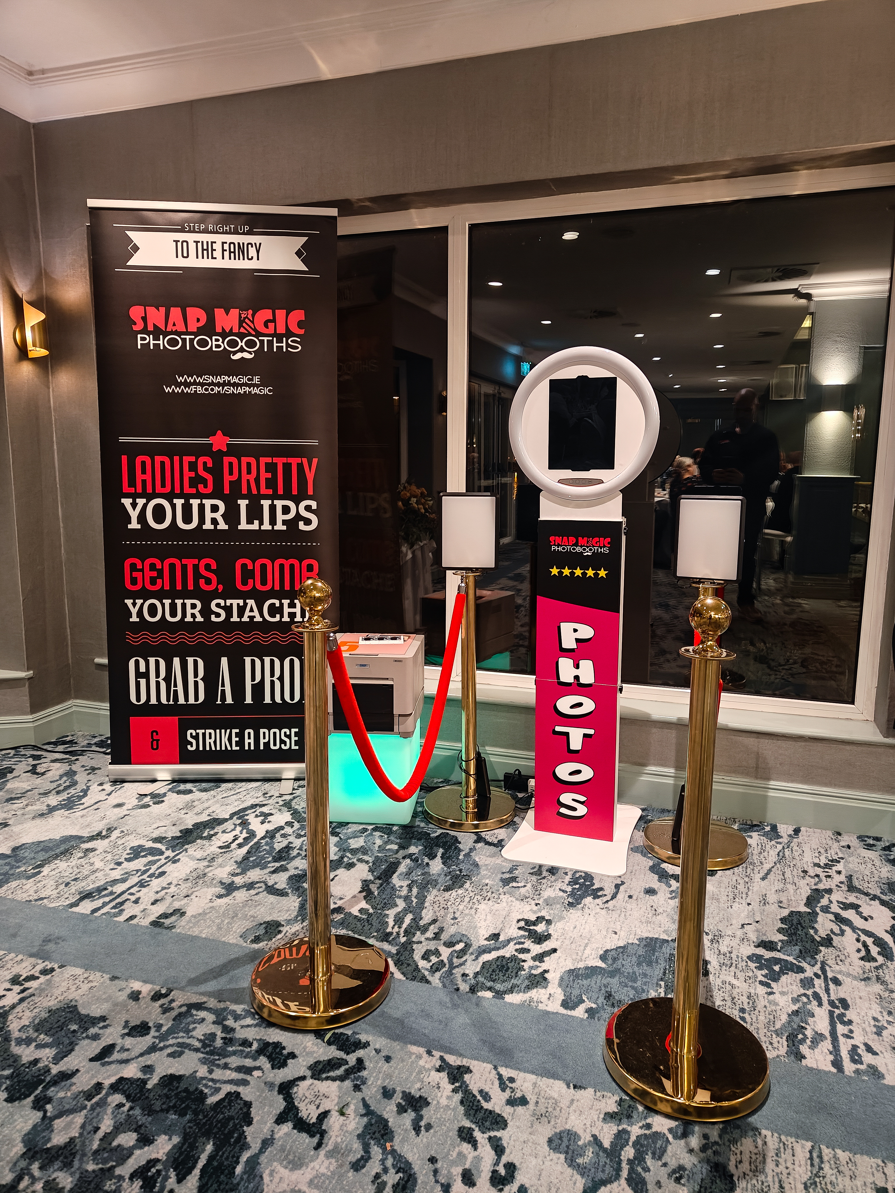 Our Digital Selfie Booths take up very little space and can fit in essentially any venue. These booths face into the room, rather than against a backdrop so any corner of the room is ideal.
