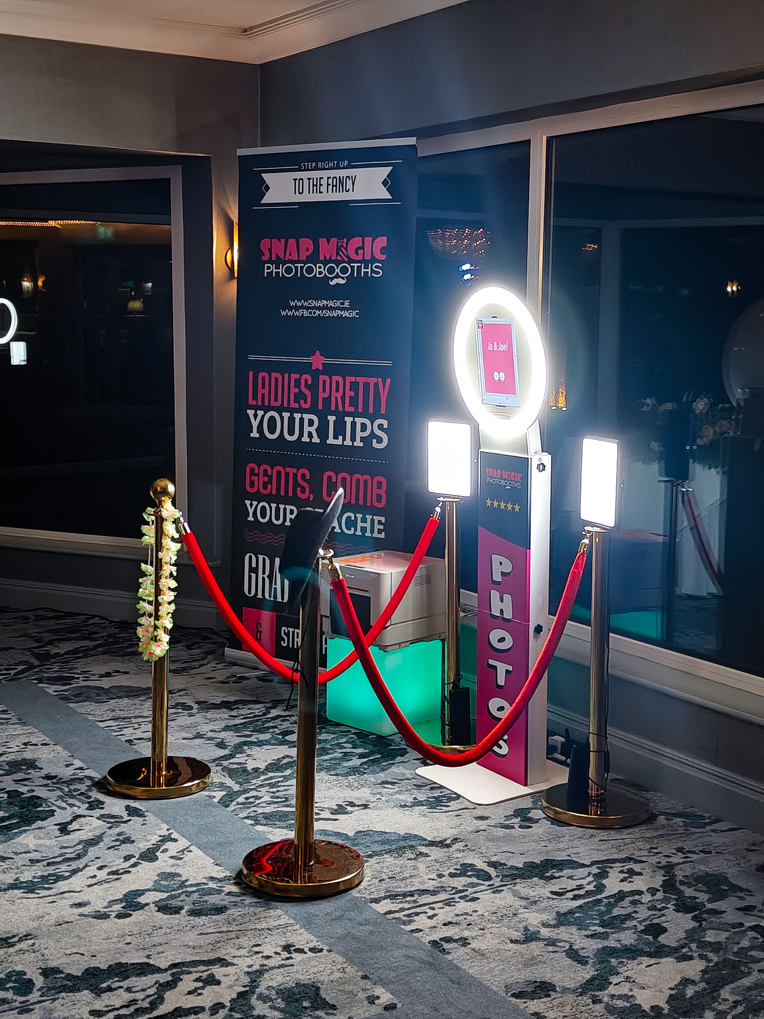 These booths come either in clean white or fully vinyl wrapped to your event or wedding design/theme. We design everything inhouse. Every selfie booth comes with a personalised start screen and shines with RGB lights to get the party started.
